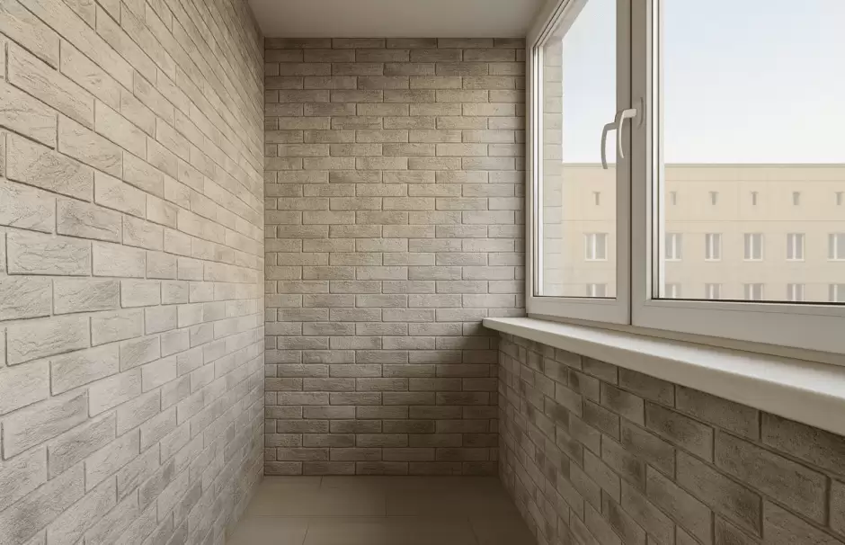 Выполнили отделку лоджии гибким кирпичом «под камень» в светло-серой гамме: облицовка стен и парапета в едином стиле, аккуратная расшивка, ровная геометрия. Основание подготовили под декоративное покрытие, проработали углы и примыкания, чтобы получить чистый и долговечный результат. Фактура «кирпича» визуально выравнивает пространство, делает лоджию аккуратной и современной, а светлый оттенок добавляет ощущение простора. Подходит для практичной эксплуатации без лишнего декора.